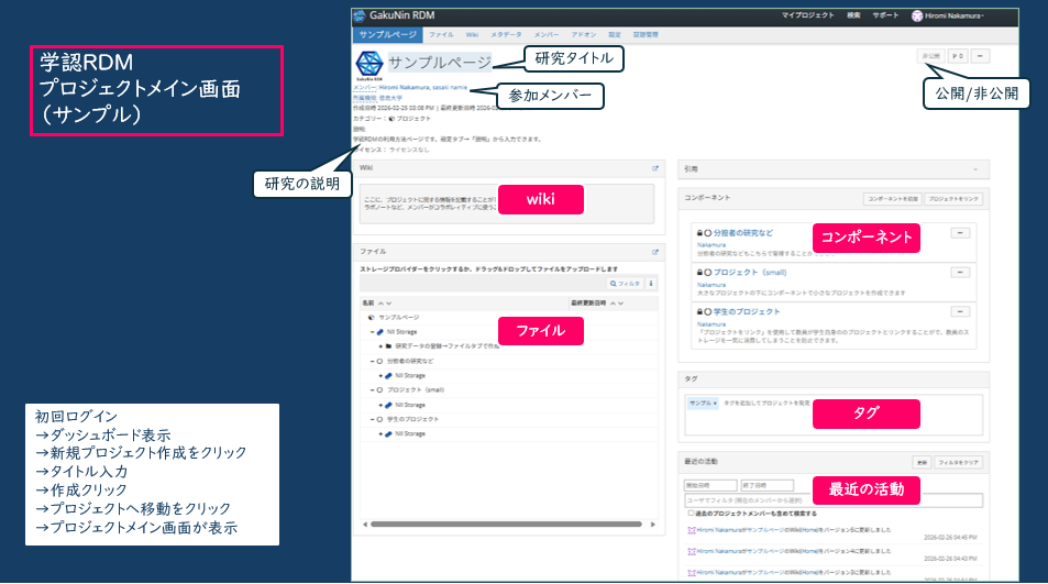 まずは、学認申請が必要です。その後、GakuNin RDMアカウントを作成します。
